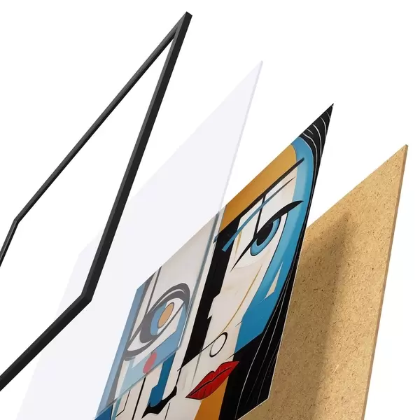 Das Poster besteht aus einem Rahmen, Plexiglas, einem gedruckten Bild und einer Rückwand aus Spanplatten. Dank der Halterungen auf der Rückseite kann das Poster sofort an die Wand gehängt werden.