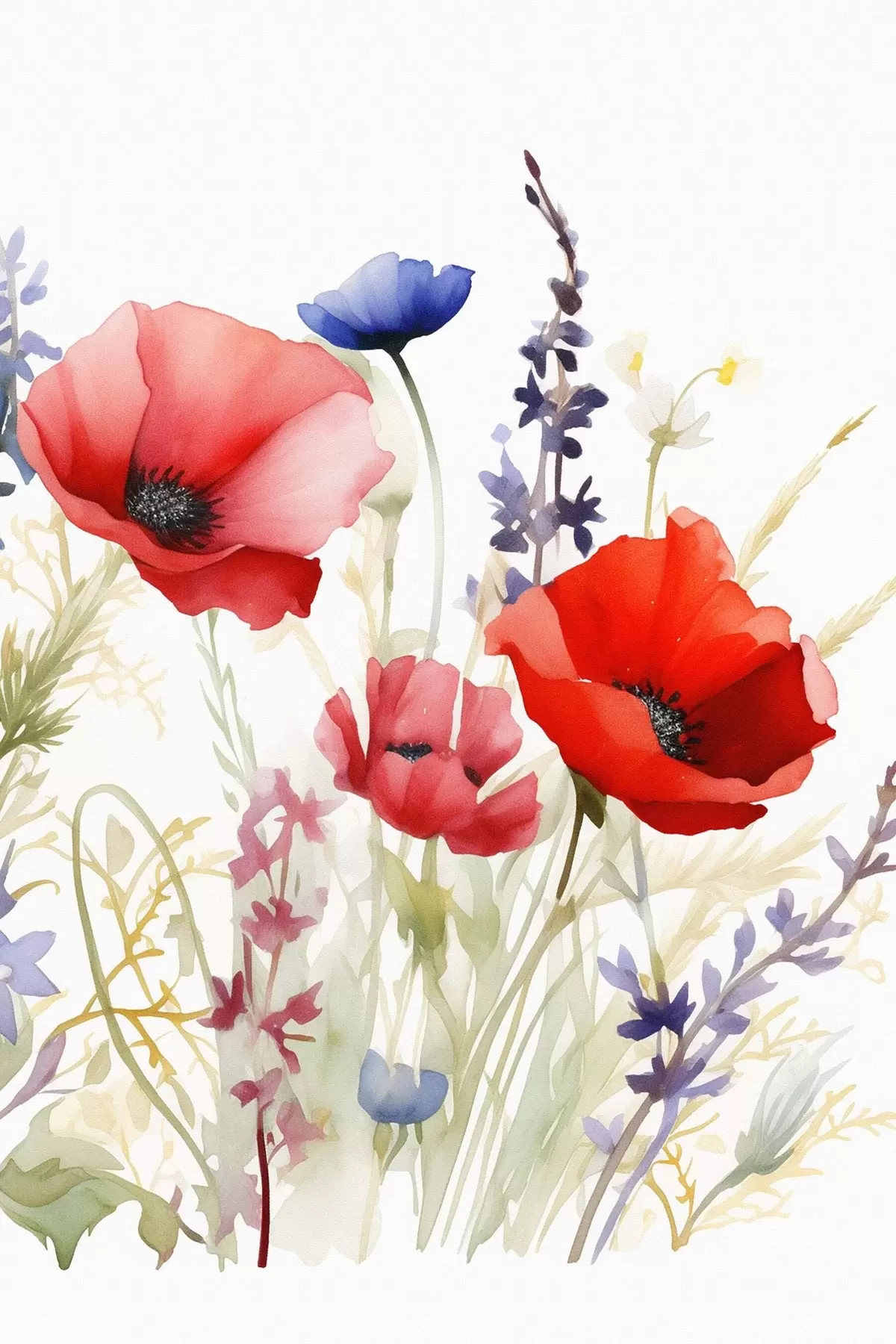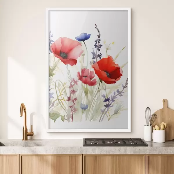 Poster Mohnblütenstände, Aquarellimitation Nr f46888