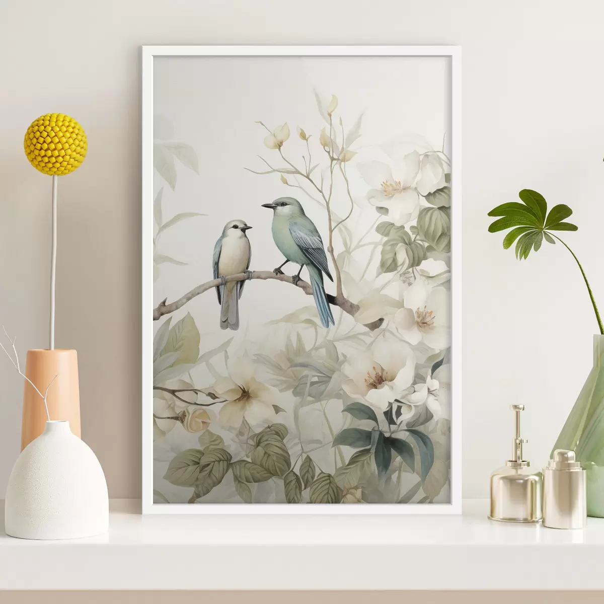 Poster Zwei Vögel auf Jasminzweigen Nr f46896