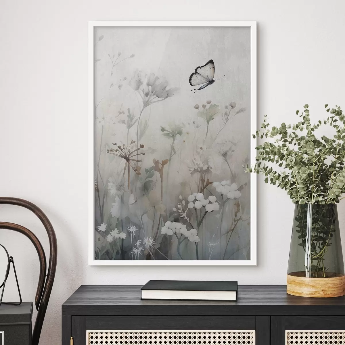Poster Schmetterling vor einem Hintergrund aus Wildblumen f46897