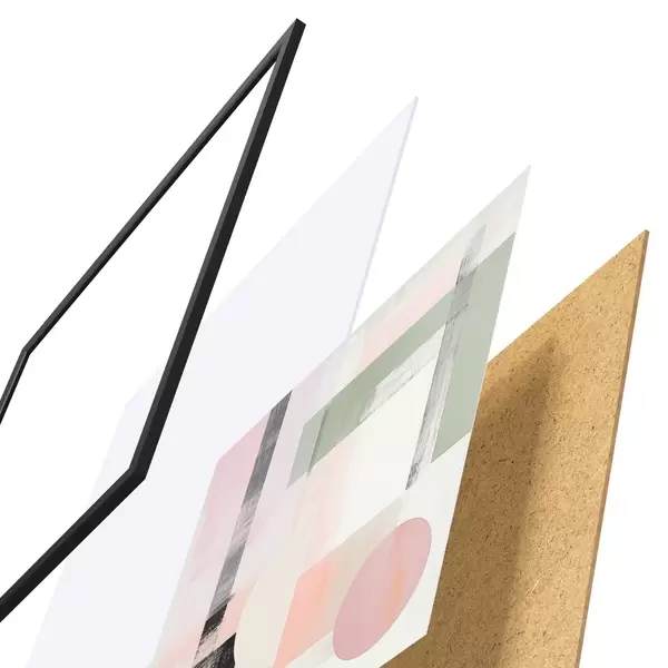 Das Poster besteht aus einem Rahmen, Plexiglas, einem gedruckten Bild und einer Rückwand aus Spanplatten. Dank der Halterungen auf der Rückseite kann das Poster sofort an die Wand gehängt werden.