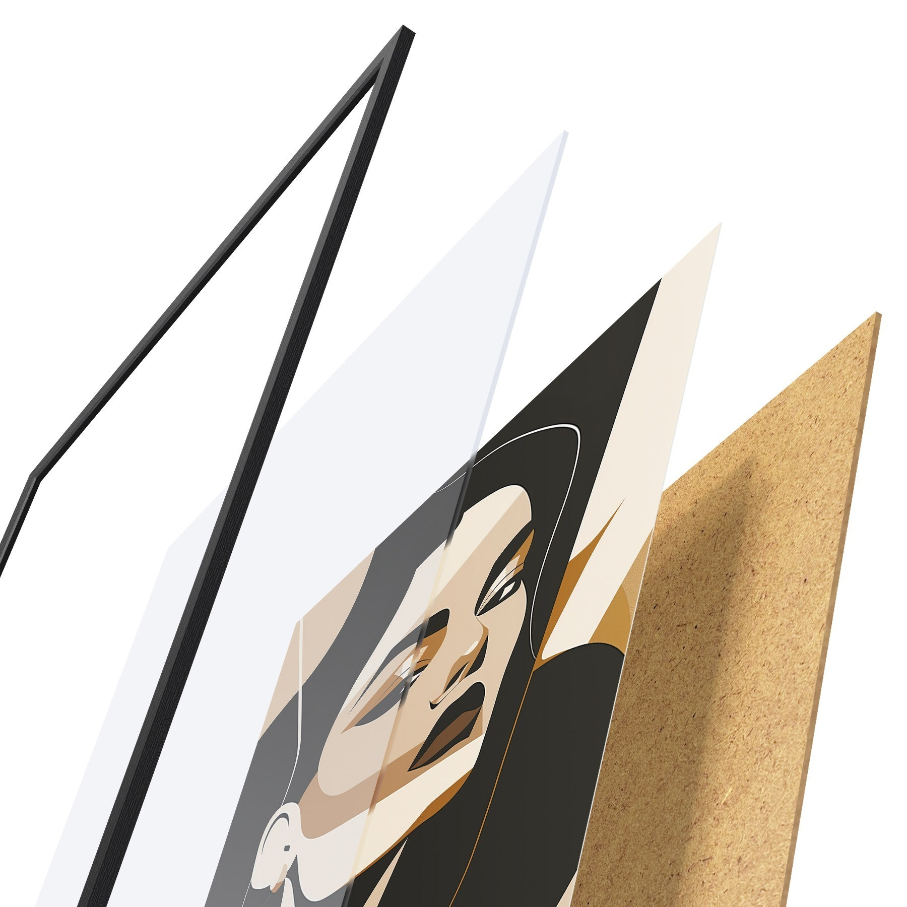 Das Poster besteht aus einem Rahmen, Plexiglas, einem gedruckten Bild und einer Rückwand aus Spanplatten. Dank der Halterungen auf der Rückseite kann das Poster sofort an die Wand gehängt werden.
