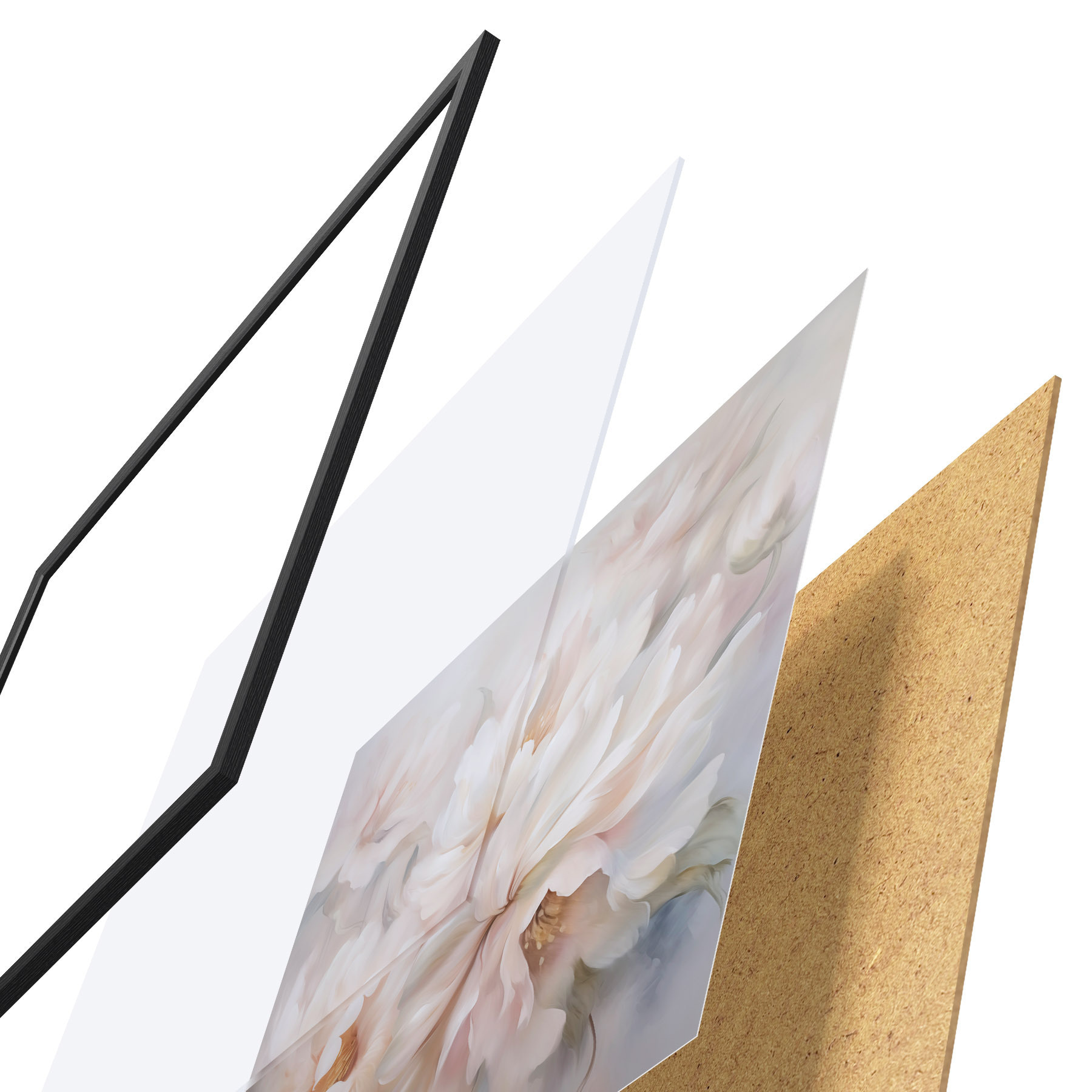 Das Poster besteht aus einem Rahmen, Plexiglas, einem gedruckten Bild und einer Rückwand aus Spanplatten. Dank der Halterungen auf der Rückseite kann das Poster sofort an die Wand gehängt werden.