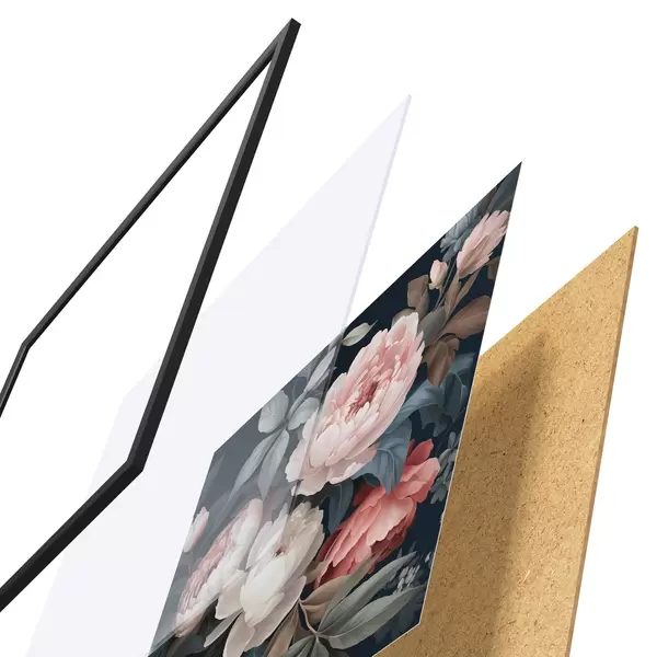 Das Poster besteht aus einem Rahmen, Plexiglas, einem gedruckten Bild und einer Rückwand aus Spanplatten. Dank der Halterungen auf der Rückseite kann das Poster sofort an die Wand gehängt werden.