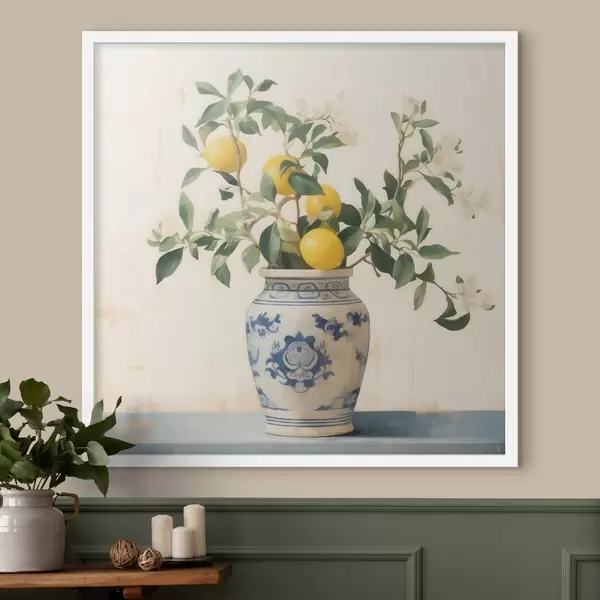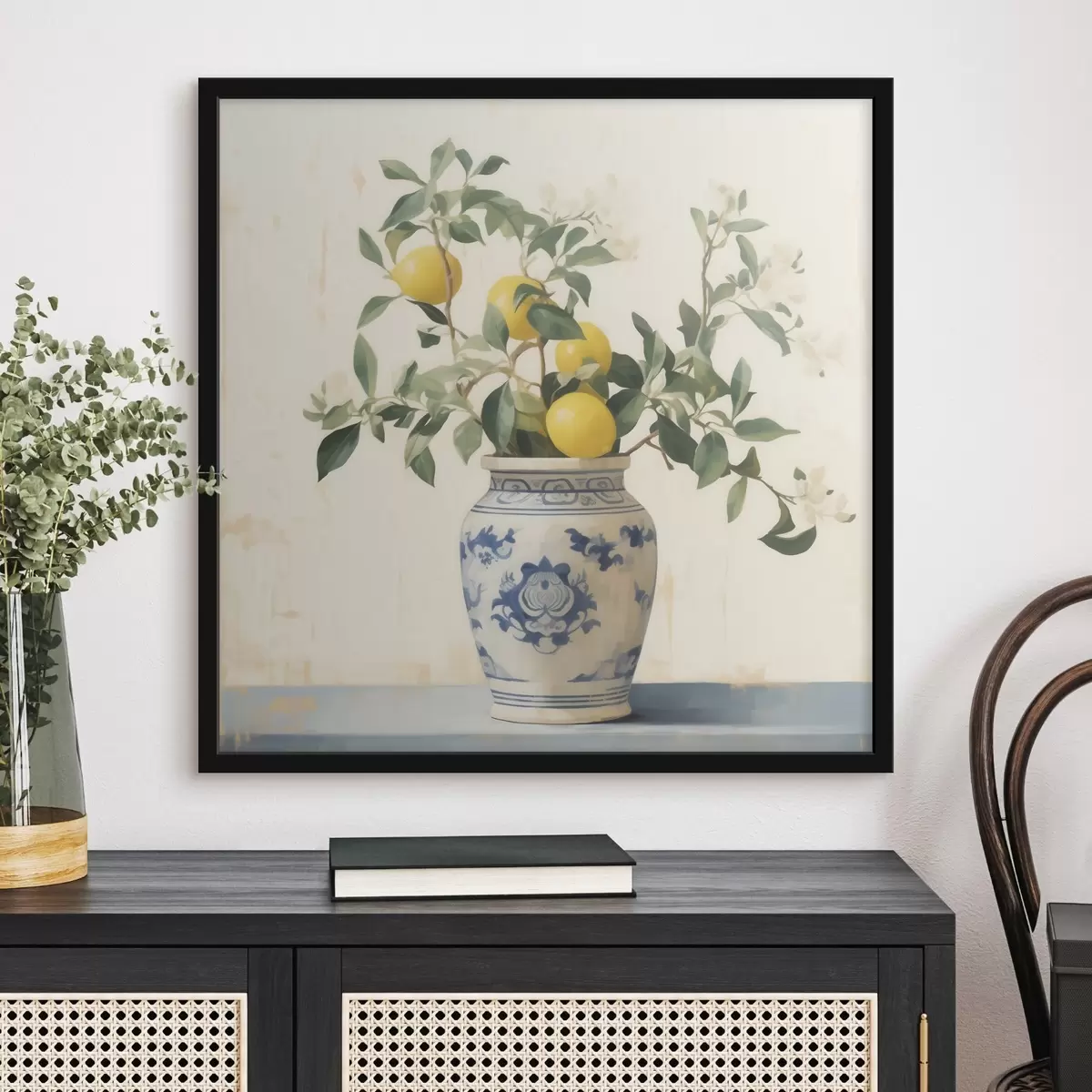 Poster Zitronen in einer blau-weißen Keramikvase im Stil eines Ölgemäldes Nr f46924