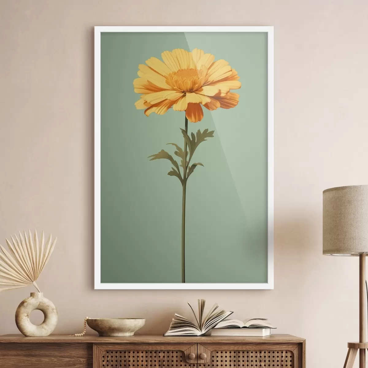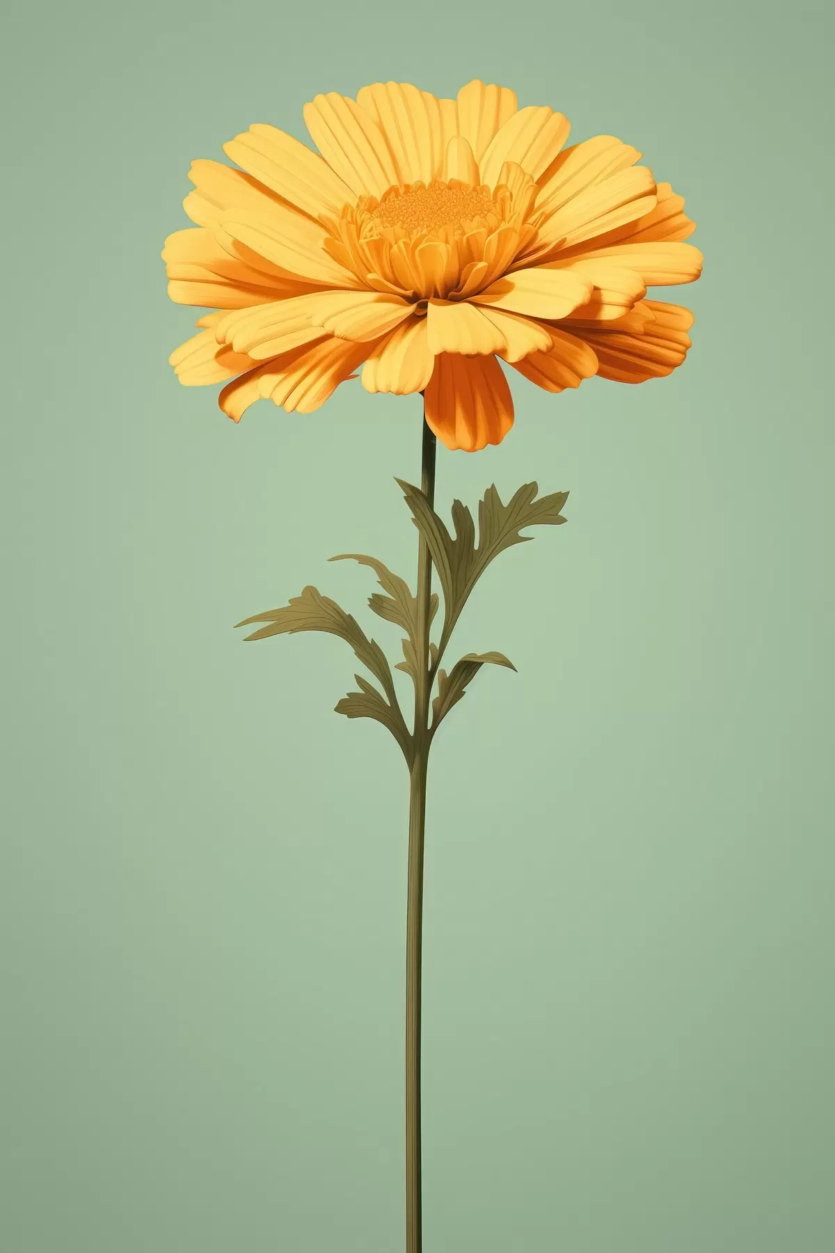 Poster Gelbe Ringelblume auf mintfarbenem Hintergrund im minimalistischen Stil Nr f46926