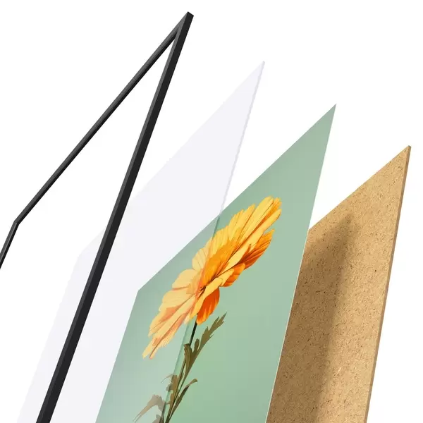 Das Poster besteht aus einem Rahmen, Plexiglas, einem gedruckten Bild und einer Rückwand aus Spanplatten. Dank der Halterungen auf der Rückseite kann das Poster sofort an die Wand gehängt werden.