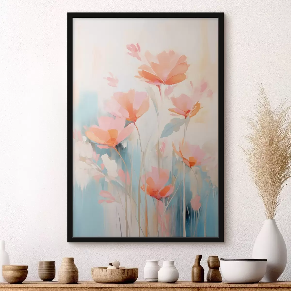 Poster Pastellfarbene Blumenkomposition in einem zeitgenössischen Malstil Nr f46930