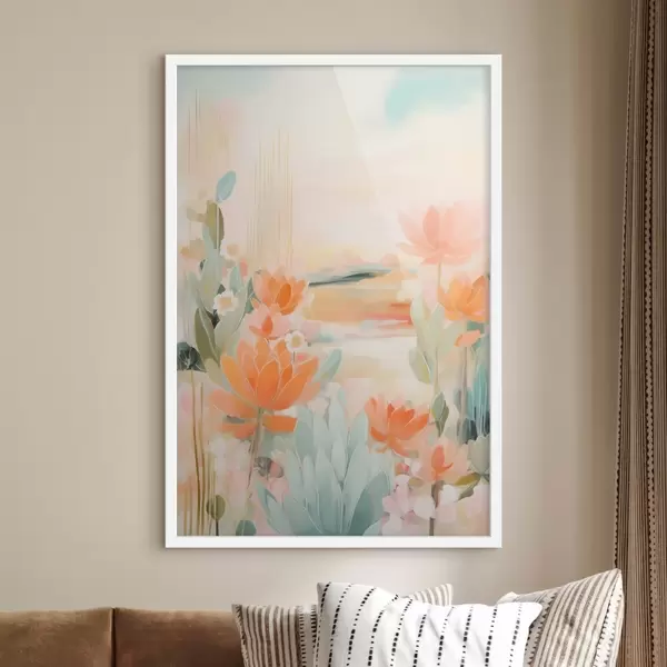 Poster Blumenlandschaft in Rosa- und Blautönen in einem zeitgenössischen Malstil Nr f46931