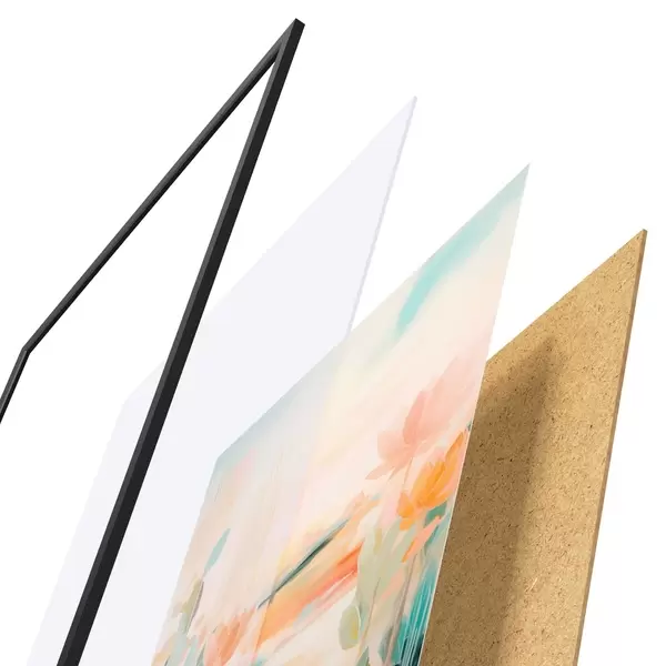 Das Poster besteht aus einem Rahmen, Plexiglas, einem gedruckten Bild und einer Rückwand aus Spanplatten. Dank der Halterungen auf der Rückseite kann das Poster sofort an die Wand gehängt werden.