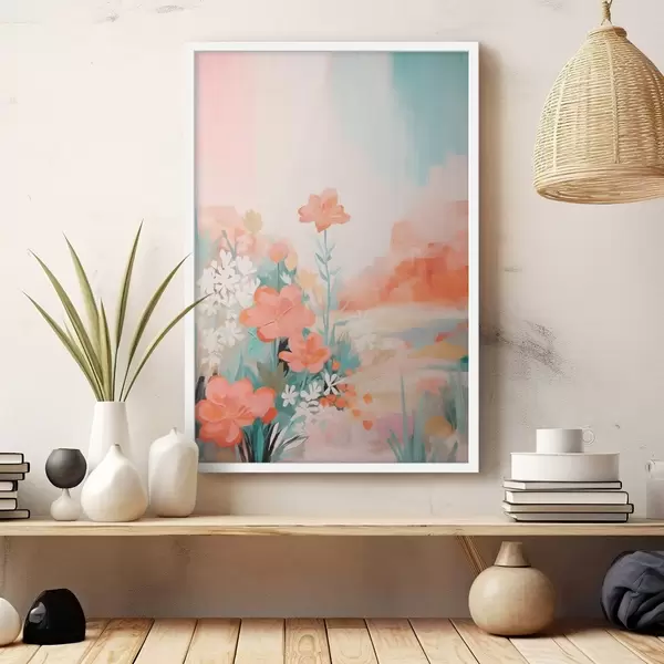 Poster Abstrakte Blumenlandschaft in Rosa- und Blautönen f46932