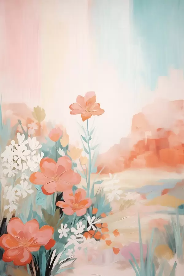 Poster Abstrakte Blumenlandschaft in Rosa- und Blautönen Nr f46932
