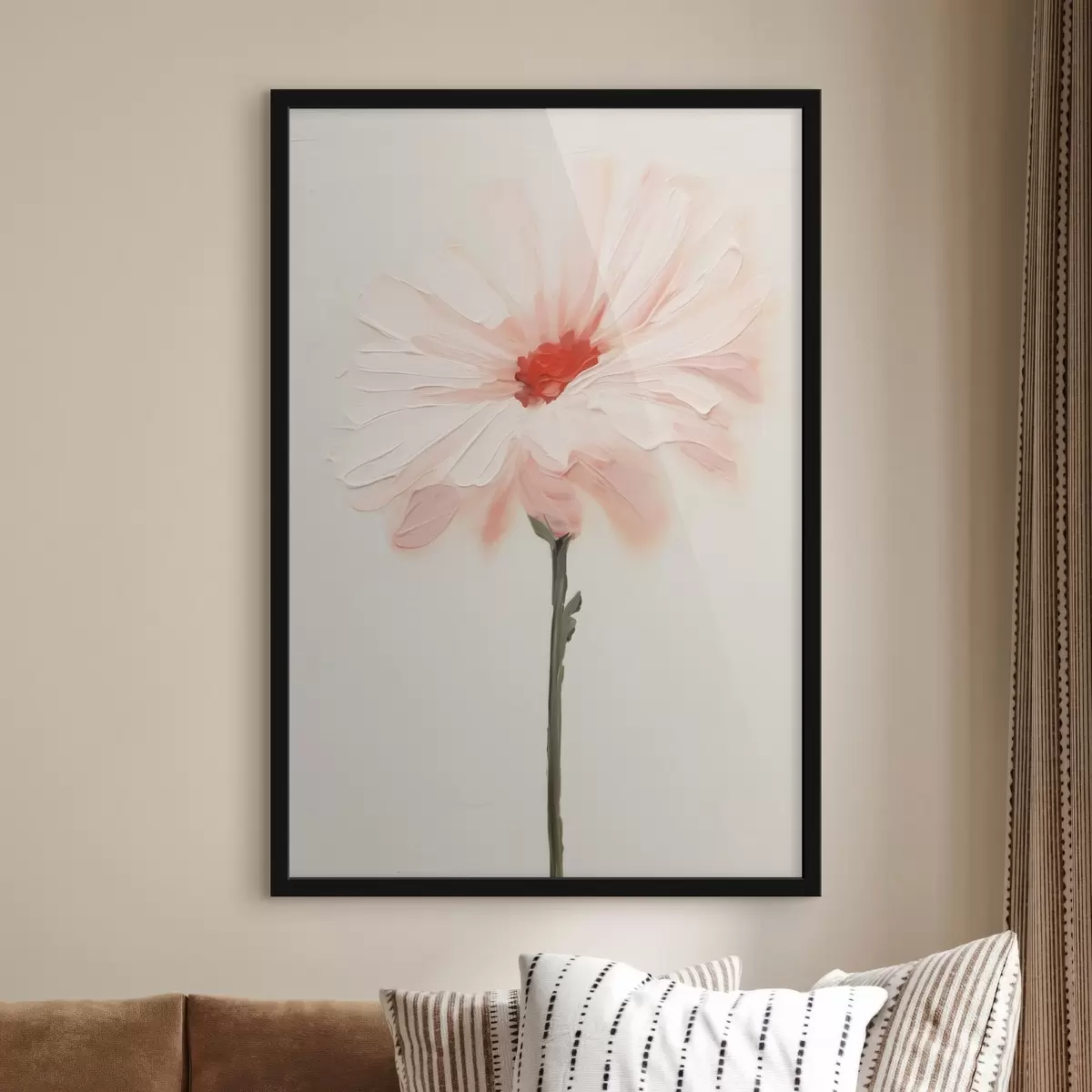 Poster Weiße und rosa Blume mit ausdrucksstarken Pinselstrichen im Stil eines Ölgemäldes Nr f46933
