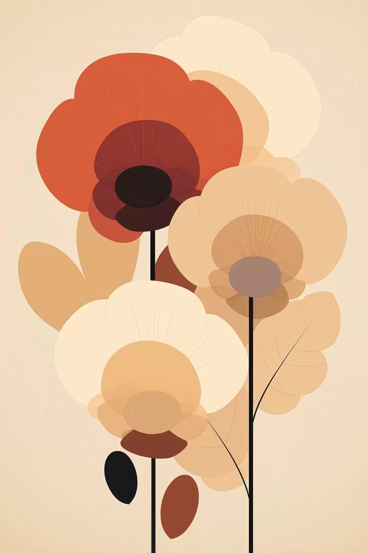 Poster Abstrakte Blumen in einer warmen Beigetönung im minimalistischen Stil Nr f46942