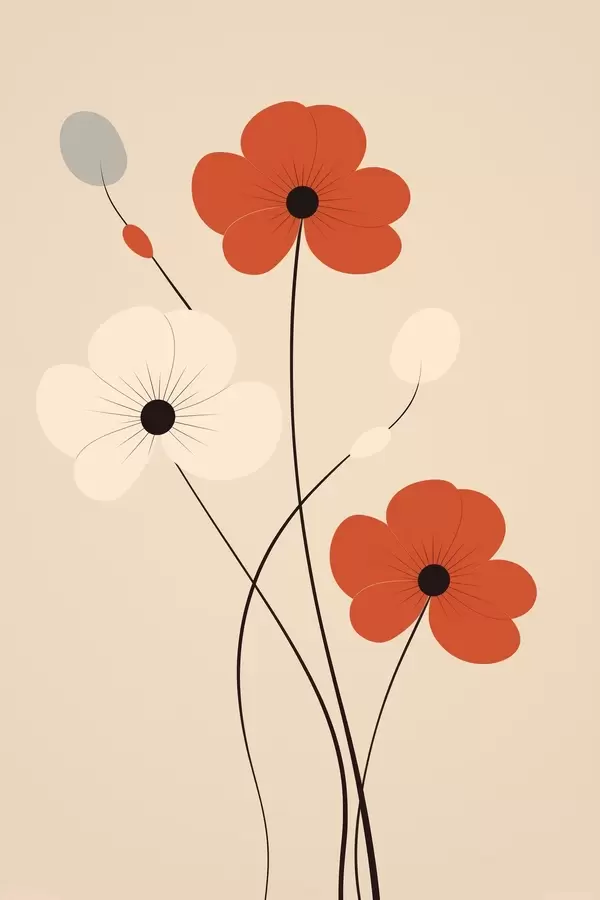 Poster Abstrakte Komposition mit dünnen Stielen und einfachen Formen im minimalistischen Stil Nr f46943
