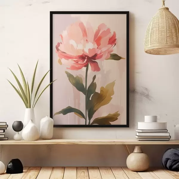 Poster Pfingstrose mit korallenrosa Blütenblättern im Stil moderner Kunstillustration f46948