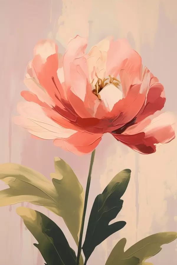 Poster Korallenfarbene Pfingstrose auf pastellfarbenem Hintergrund im Stil moderner Kunstillustration Nr f46949