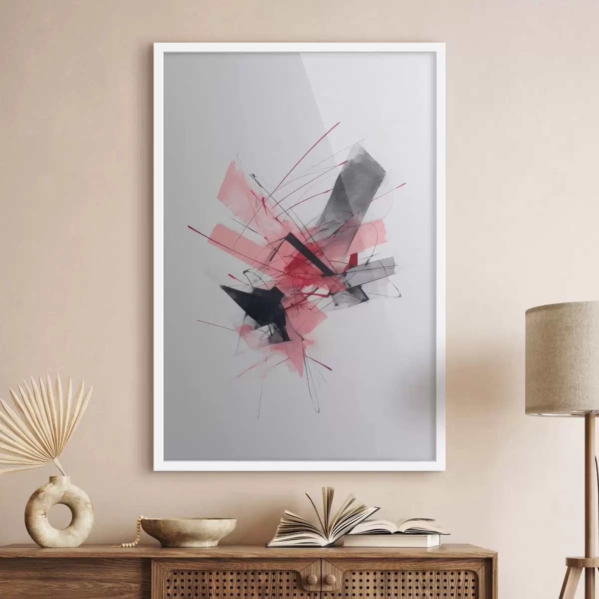 Poster Abstraktes Bild mit rosa und schwarzen geometrischen Elementen f46950
