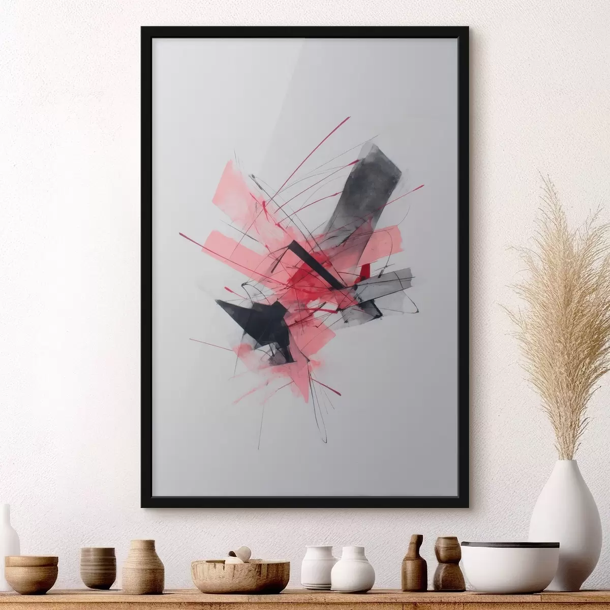 Poster Abstraktes Bild mit rosa und schwarzen geometrischen Elementen Nr f46950
