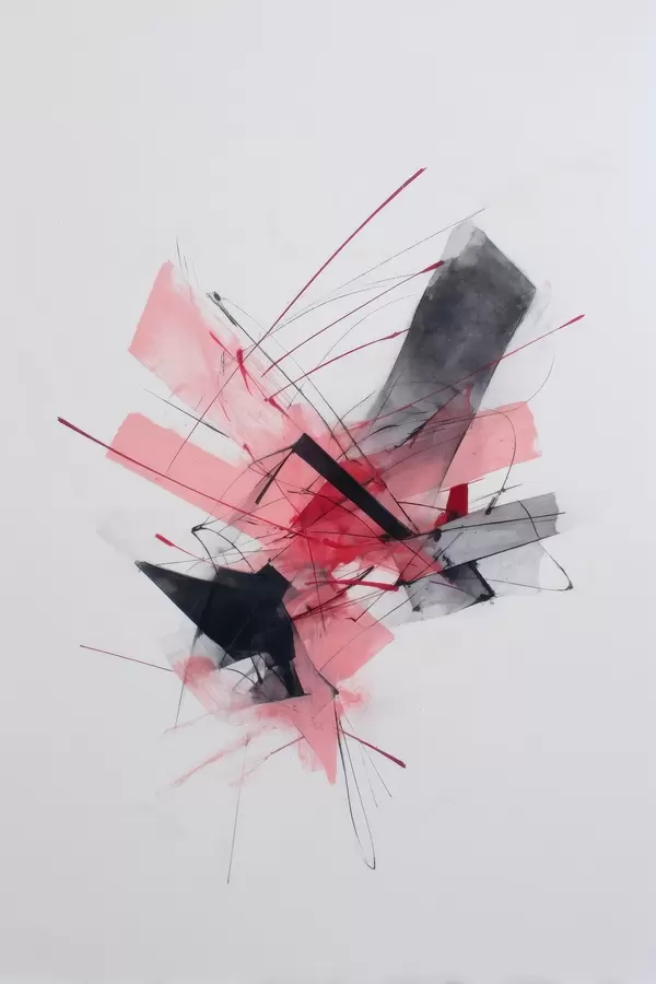 Poster Abstraktes Bild mit rosa und schwarzen geometrischen Elementen Nr f46950