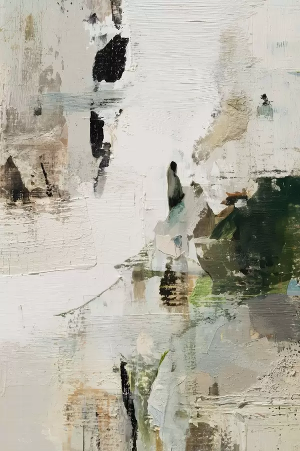 Poster Abstrakte Komposition in Pastelltönen mit dunkelgrünen Akzenten im Stil der Ölmalerei Nr f46960