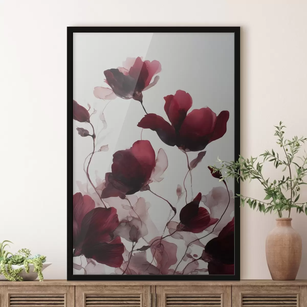 Poster Zarte Mohnblumen mit Unschärfeeffekt im Aquarell-Harmonie-Stil f46962