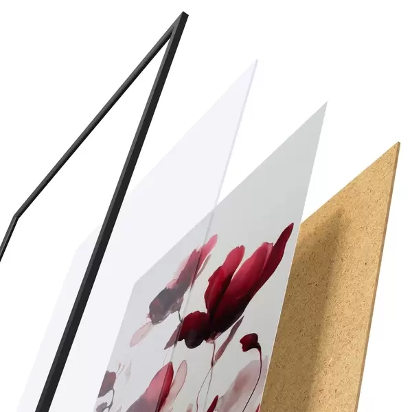 Das Poster besteht aus einem Rahmen, Plexiglas, einem gedruckten Bild und einer Rückwand aus Spanplatten. Dank der Halterungen auf der Rückseite kann das Poster sofort an die Wand gehängt werden.