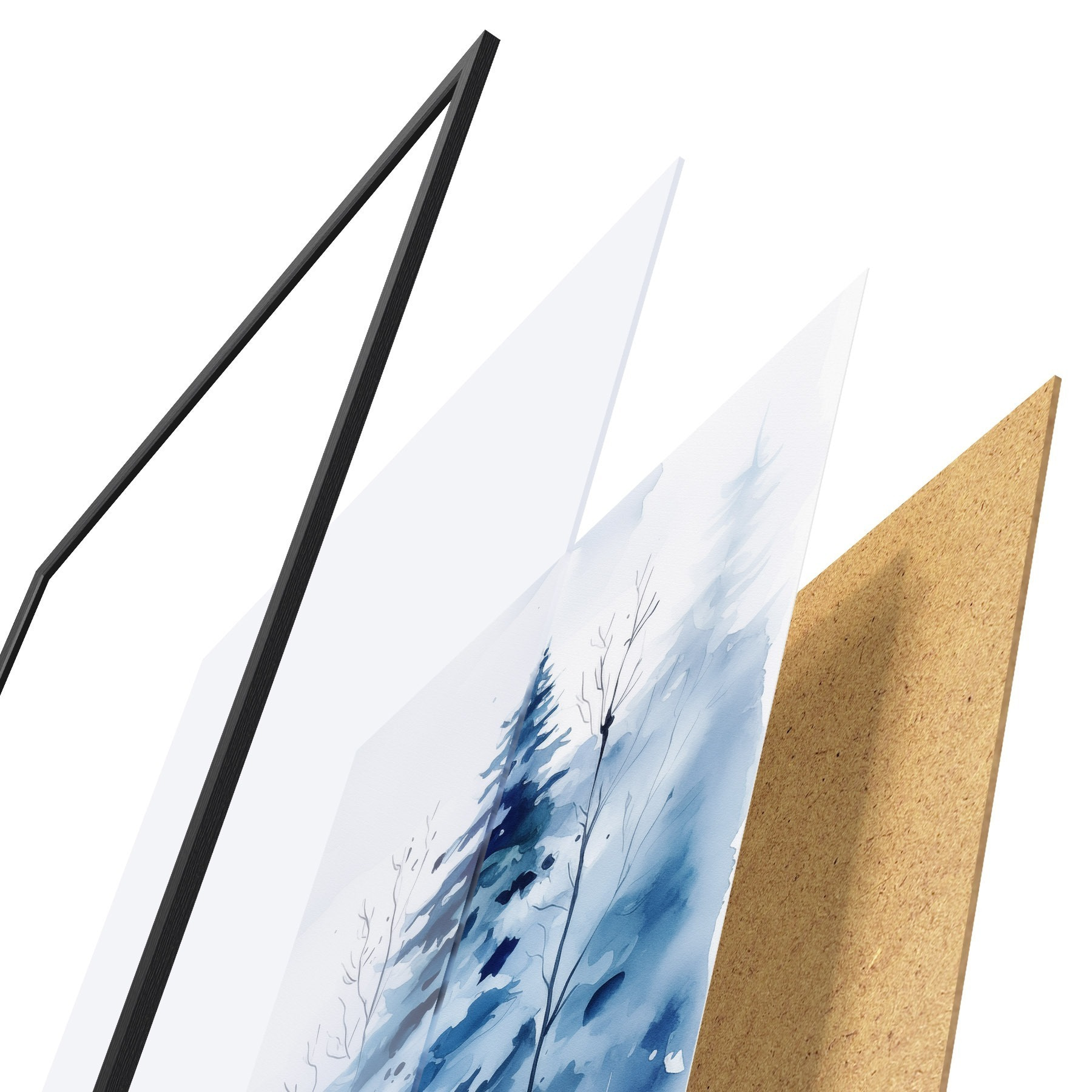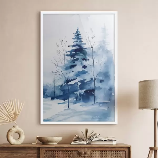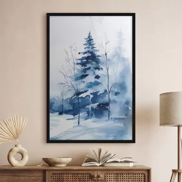 Poster Tanne in einem Winterwald, Aquarellimitation Nr f46964
