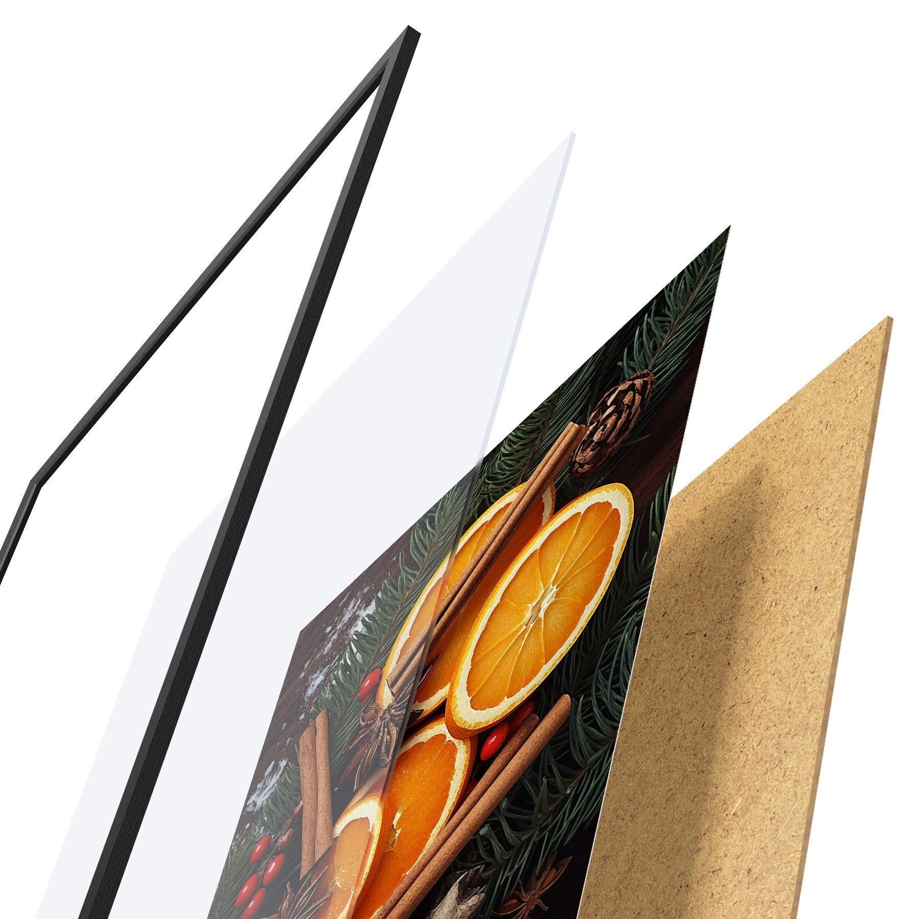 Das Poster besteht aus einem Rahmen, Plexiglas, einem gedruckten Bild und einer Rückwand aus Spanplatten. Dank der Halterungen auf der Rückseite kann das Poster sofort an die Wand gehängt werden.