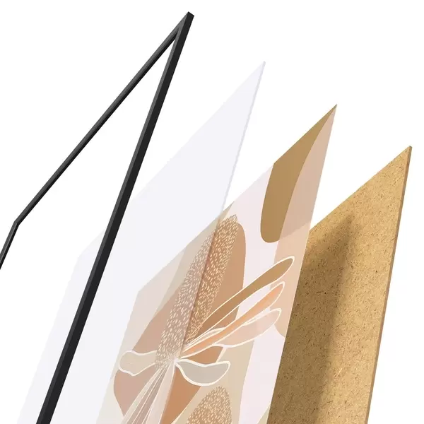 Das Poster besteht aus einem Rahmen, Plexiglas, einem gedruckten Bild und einer Rückwand aus Spanplatten. Dank der Halterungen auf der Rückseite kann das Poster sofort an die Wand gehängt werden.