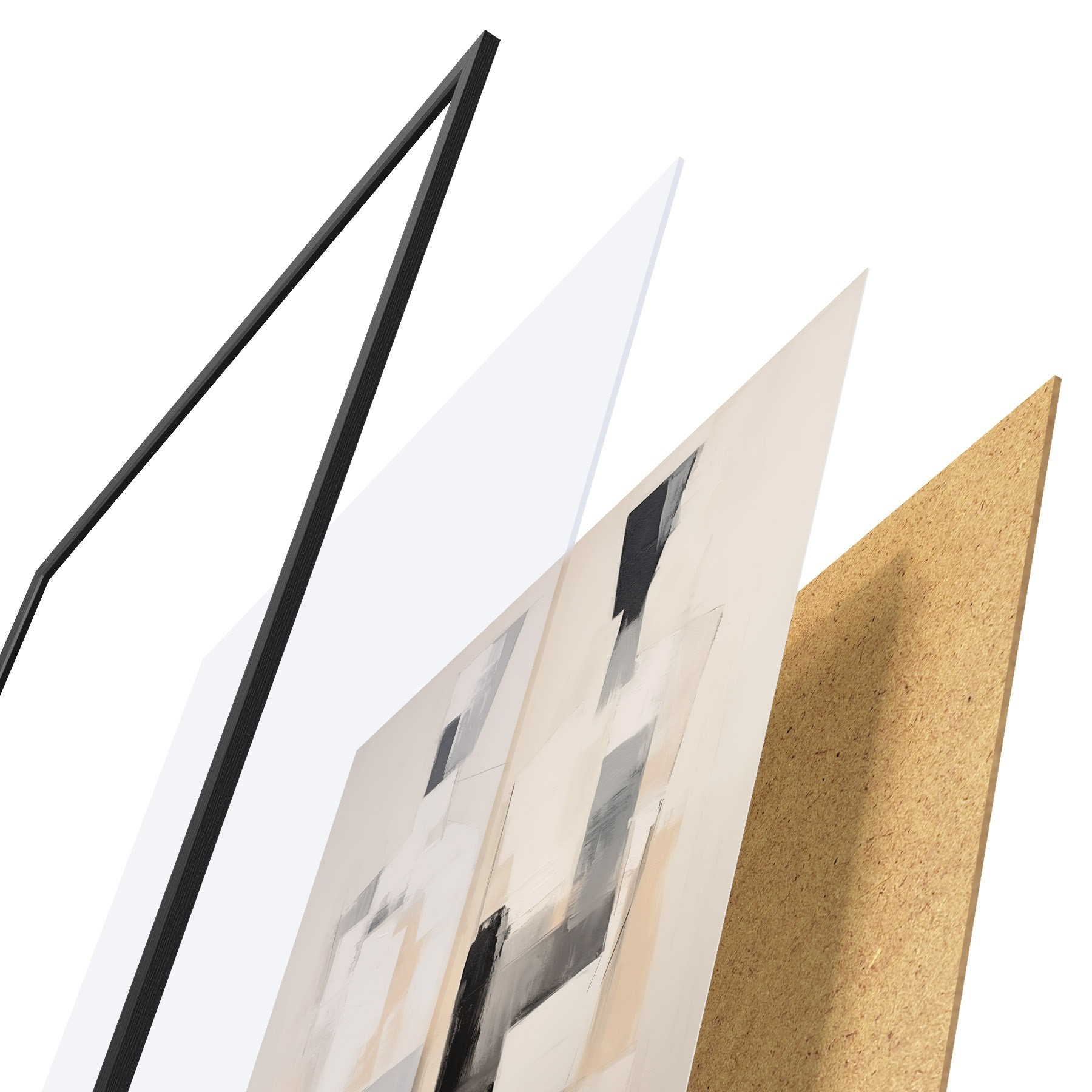 Das Poster besteht aus einem Rahmen, Plexiglas, einem gedruckten Bild und einer Rückwand aus Spanplatten. Dank der Halterungen auf der Rückseite kann das Poster sofort an die Wand gehängt werden.