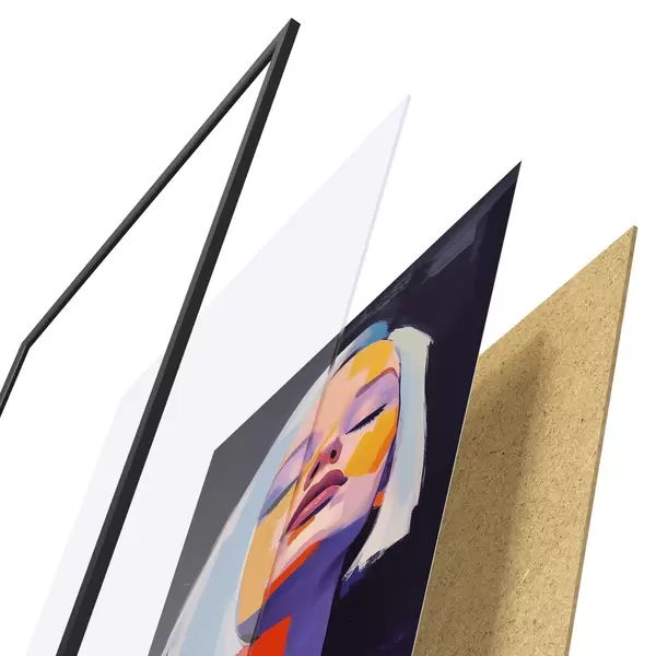 Das Poster besteht aus einem Rahmen, Plexiglas, einem gedruckten Bild und einer Rückwand aus Spanplatten. Dank der Halterungen auf der Rückseite kann das Poster sofort an die Wand gehängt werden.