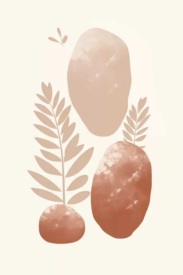 Poster Abstrakte Formen, strukturierte Steine und Blätter in gedeckten Pfirsich- und Terrakottatönen, minimalistisch, cremefarbener Hintergrund Nr f47012