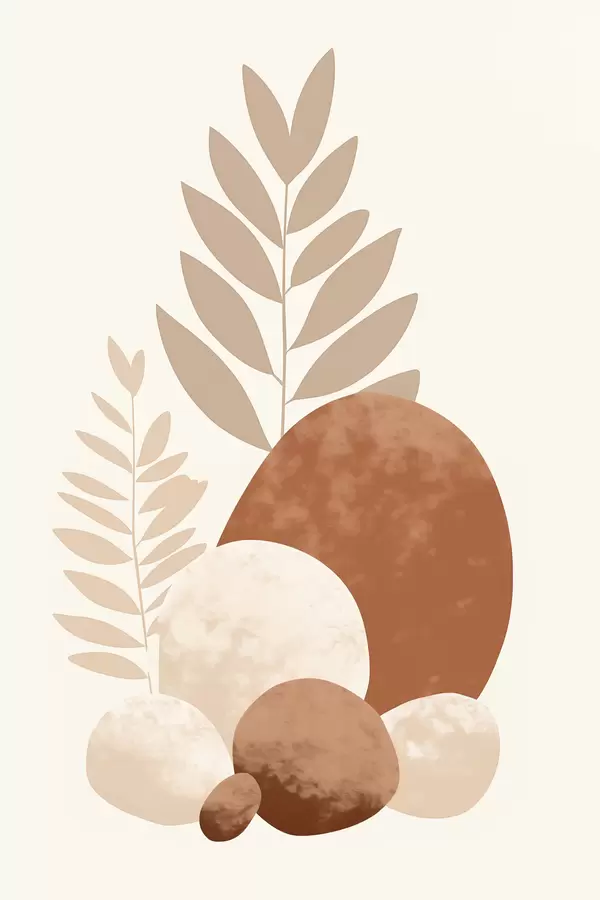 Poster Abstrakte Formen, strukturierte Steine und Blätter in gedeckten Pfirsich- und Terrakottatönen, minimalistisch, cremefarbener Hintergrund Nr f47013