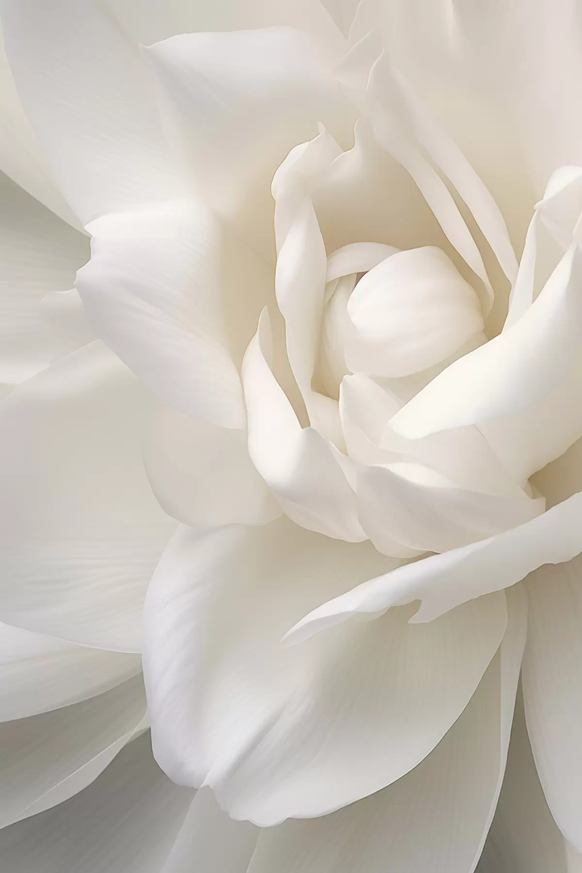Poster Abstrakte weiße Blume mit zarten, geschichteten Blütenblättern, minimalistische Kunst Nr f47025