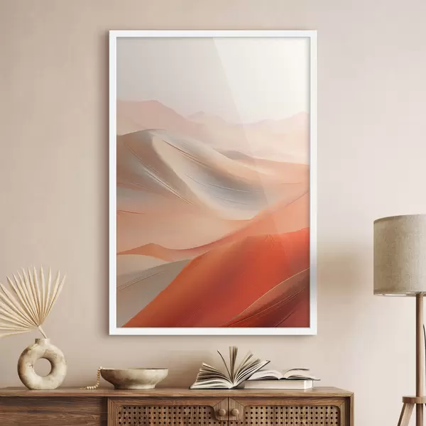 Poster Abstrakte Wüstenlandschaft mit fließenden Sanddünen in warmen Orange- und Weißtönen Nr f47030