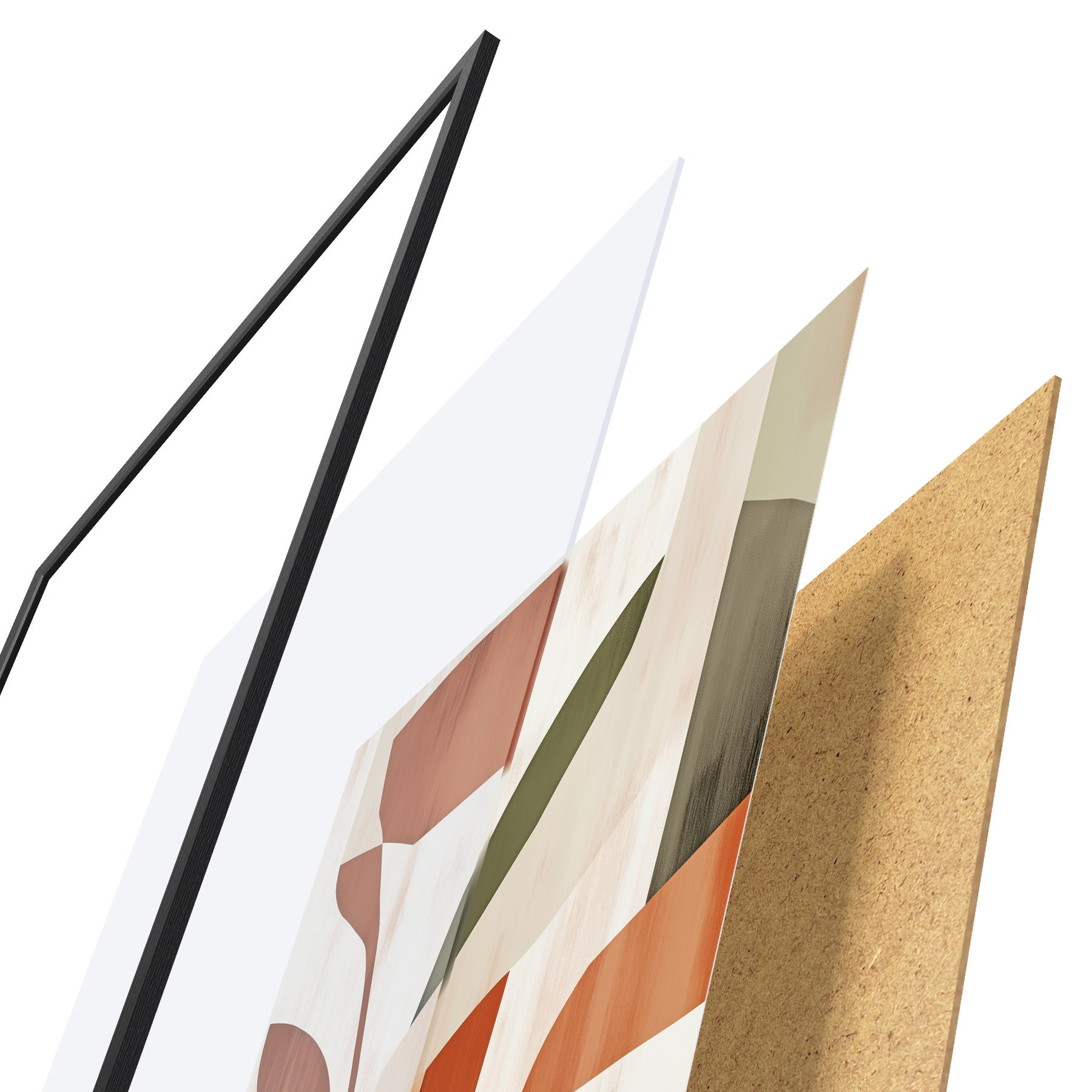 Das Poster besteht aus einem Rahmen, Plexiglas, einem gedruckten Bild und einer Rückwand aus Spanplatten. Dank der Halterungen auf der Rückseite kann das Poster sofort an die Wand gehängt werden.