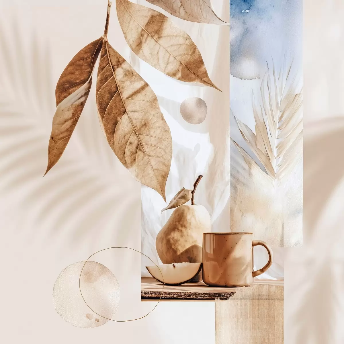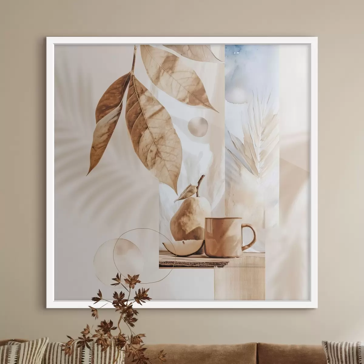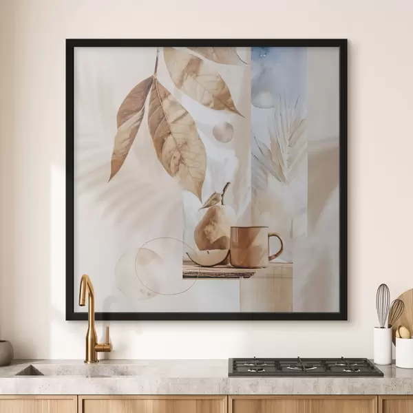 Poster Abstrakt mit Blättern, Birne und Tasse Nr f47047