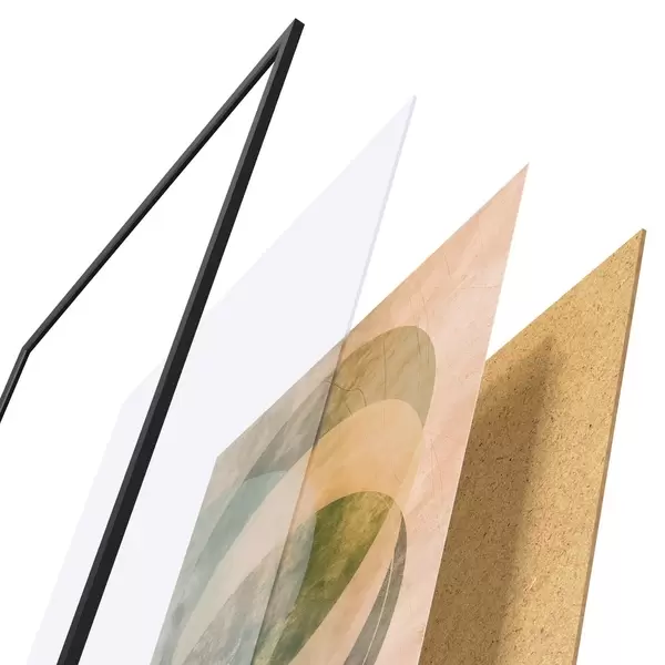 Das Poster besteht aus einem Rahmen, Plexiglas, einem gedruckten Bild und einer Rückwand aus Spanplatten. Dank der Halterungen auf der Rückseite kann das Poster sofort an die Wand gehängt werden.