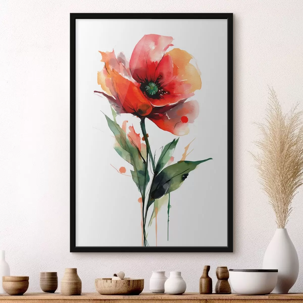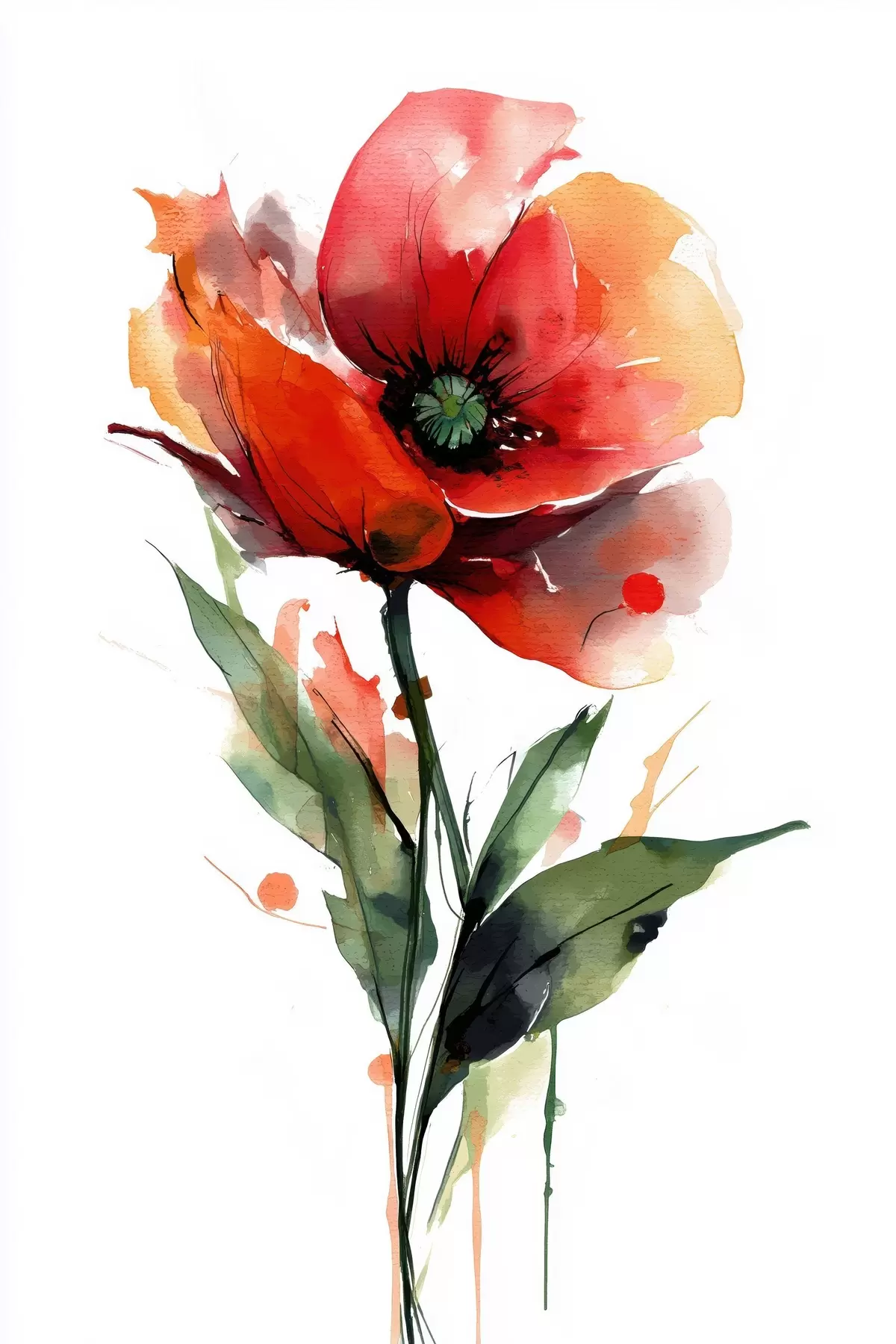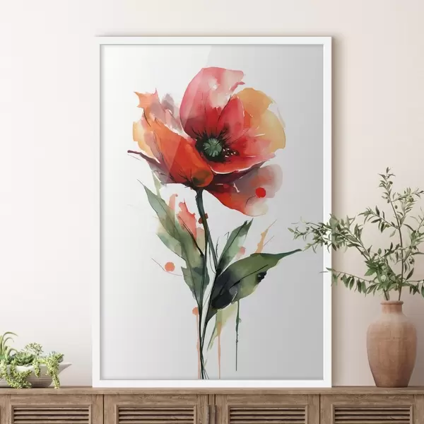 Poster Mohnblume mit ausdrucksstarken Wasserfarben-Farbtropfen im Stil moderner Kunstillustrationen f47086