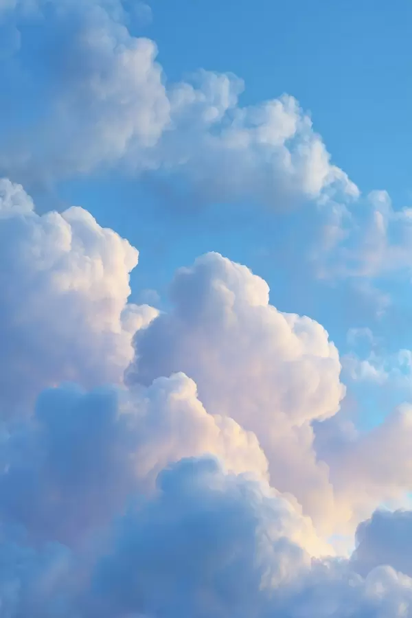 Poster Voluminöse Wolken in sanften Blau- und Rosatönen im fotorealistischen digitalen Grafikstil Nr f47088