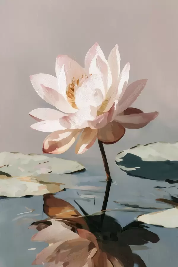 Poster Weißer Lotus auf pastellfarbenem Hintergrund im Ölgemäldestil Nr f47093