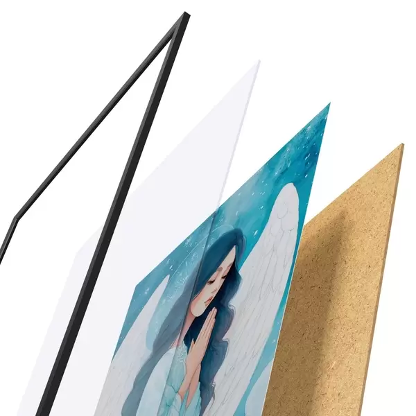 Das Poster besteht aus einem Rahmen, Plexiglas, einem gedruckten Bild und einer Rückwand aus Spanplatten. Dank der Halterungen auf der Rückseite kann das Poster sofort an die Wand gehängt werden.
