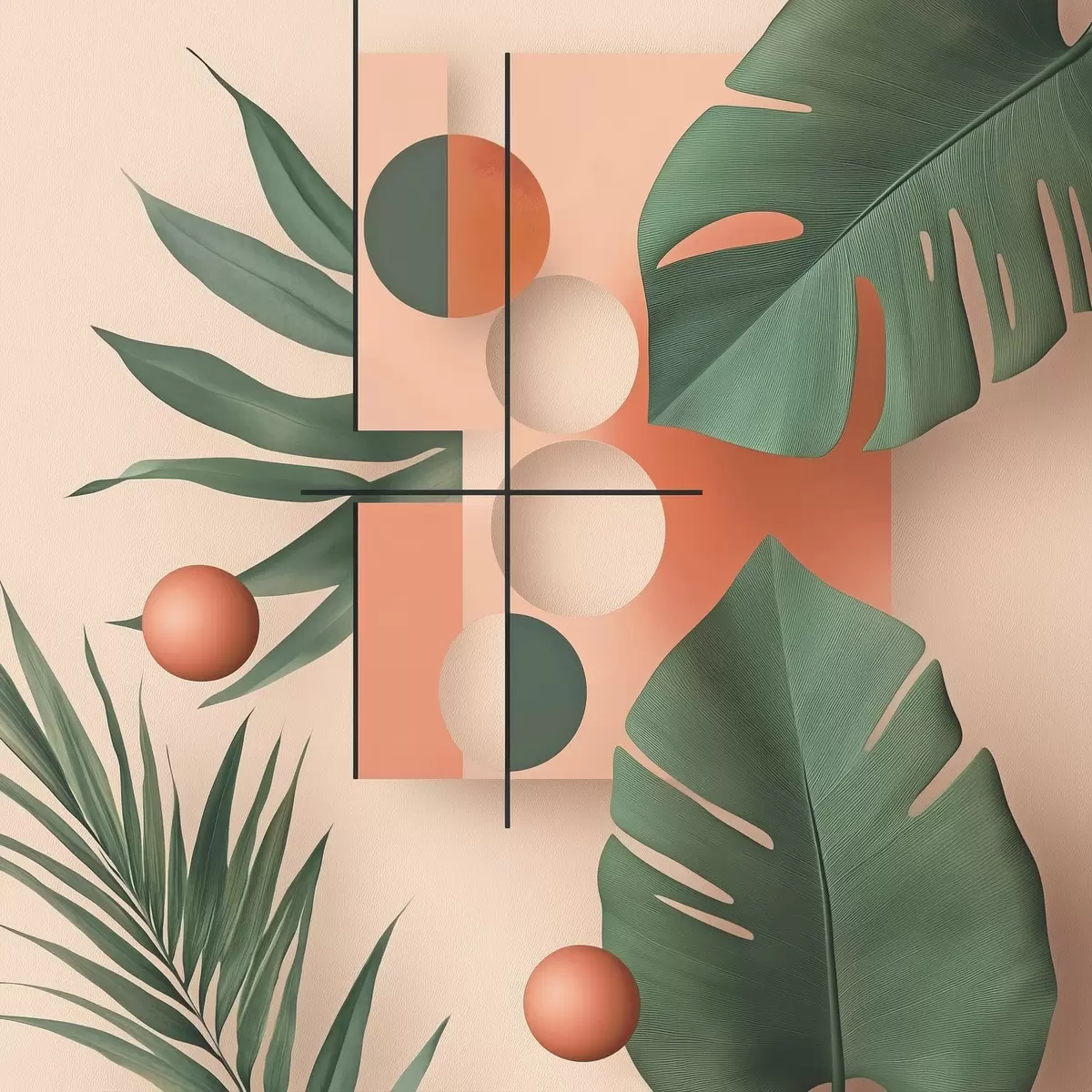 Poster Abstraktion mit großen tropischen Blättern Nr f47099