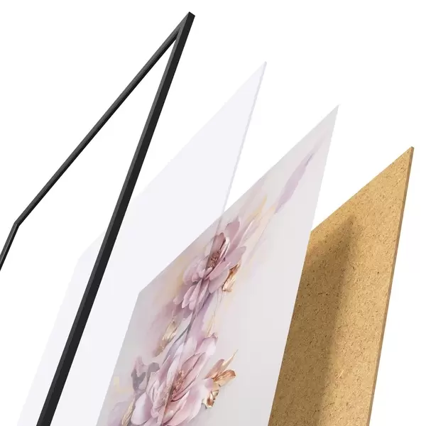 Das Poster besteht aus einem Rahmen, Plexiglas, einem gedruckten Bild und einer Rückwand aus Spanplatten. Dank der Halterungen auf der Rückseite kann das Poster sofort an die Wand gehängt werden.