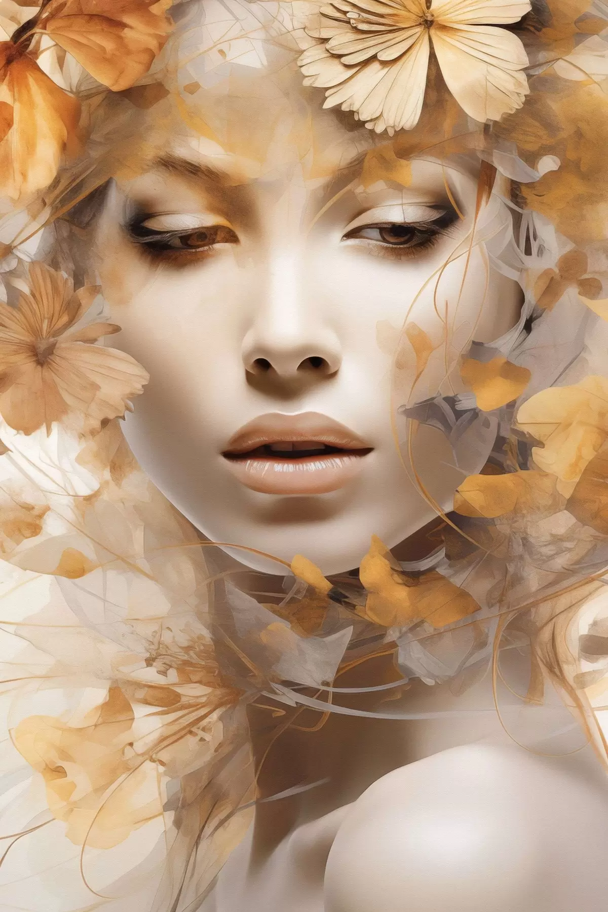 Poster Menschen, Mädchen und Blumen, Nachbildung einer Skulptur f47112