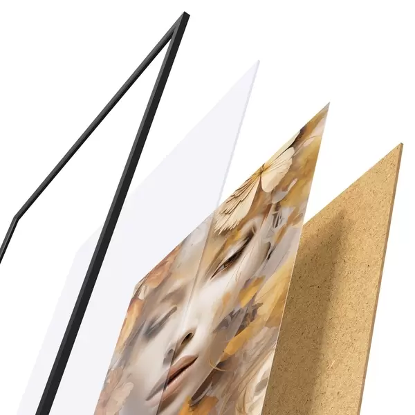 Das Poster besteht aus einem Rahmen, Plexiglas, einem gedruckten Bild und einer Rückwand aus Spanplatten. Dank der Halterungen auf der Rückseite kann das Poster sofort an die Wand gehängt werden.