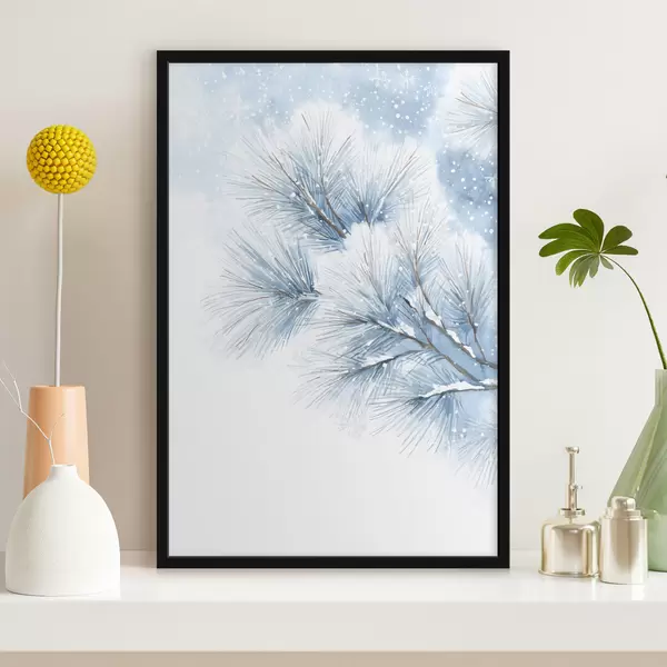 Poster Schneebedeckter Kiefernzweig im Aquarellstil f47114