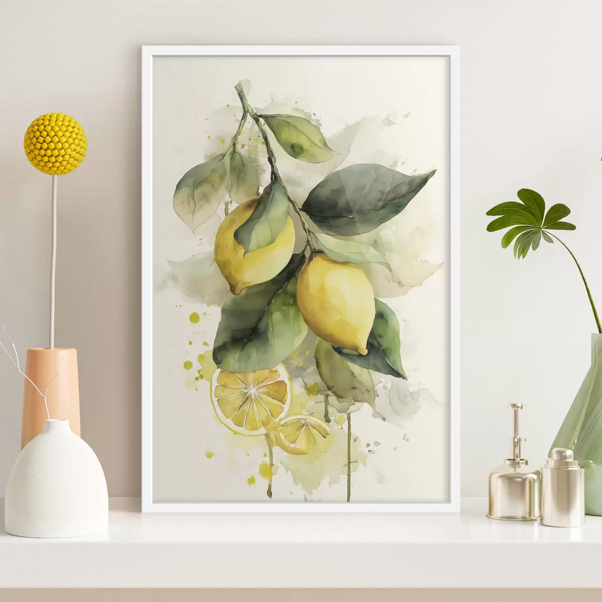Poster Zweig mit Zitronen im Aquarellstil Nr f47123