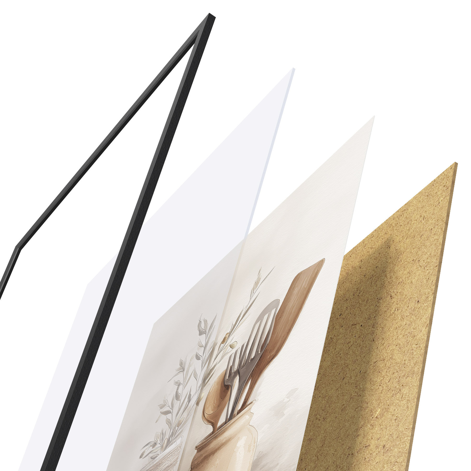Das Poster besteht aus einem Rahmen, Plexiglas, einem gedruckten Bild und einer Rückwand aus Spanplatten. Dank der Halterungen auf der Rückseite kann das Poster sofort an die Wand gehängt werden.